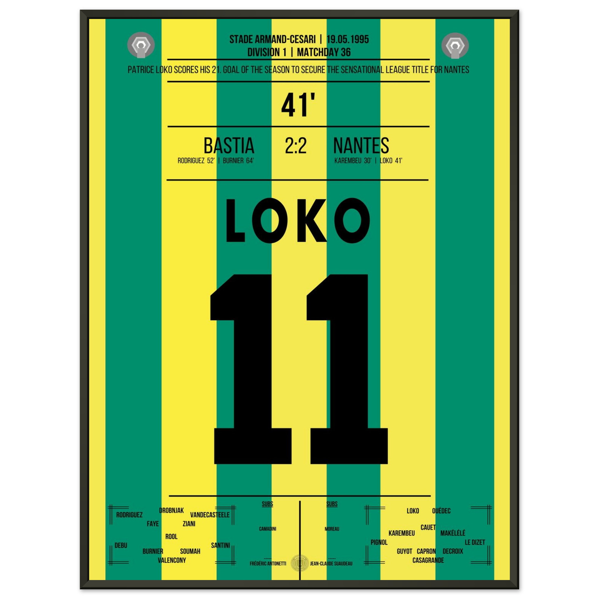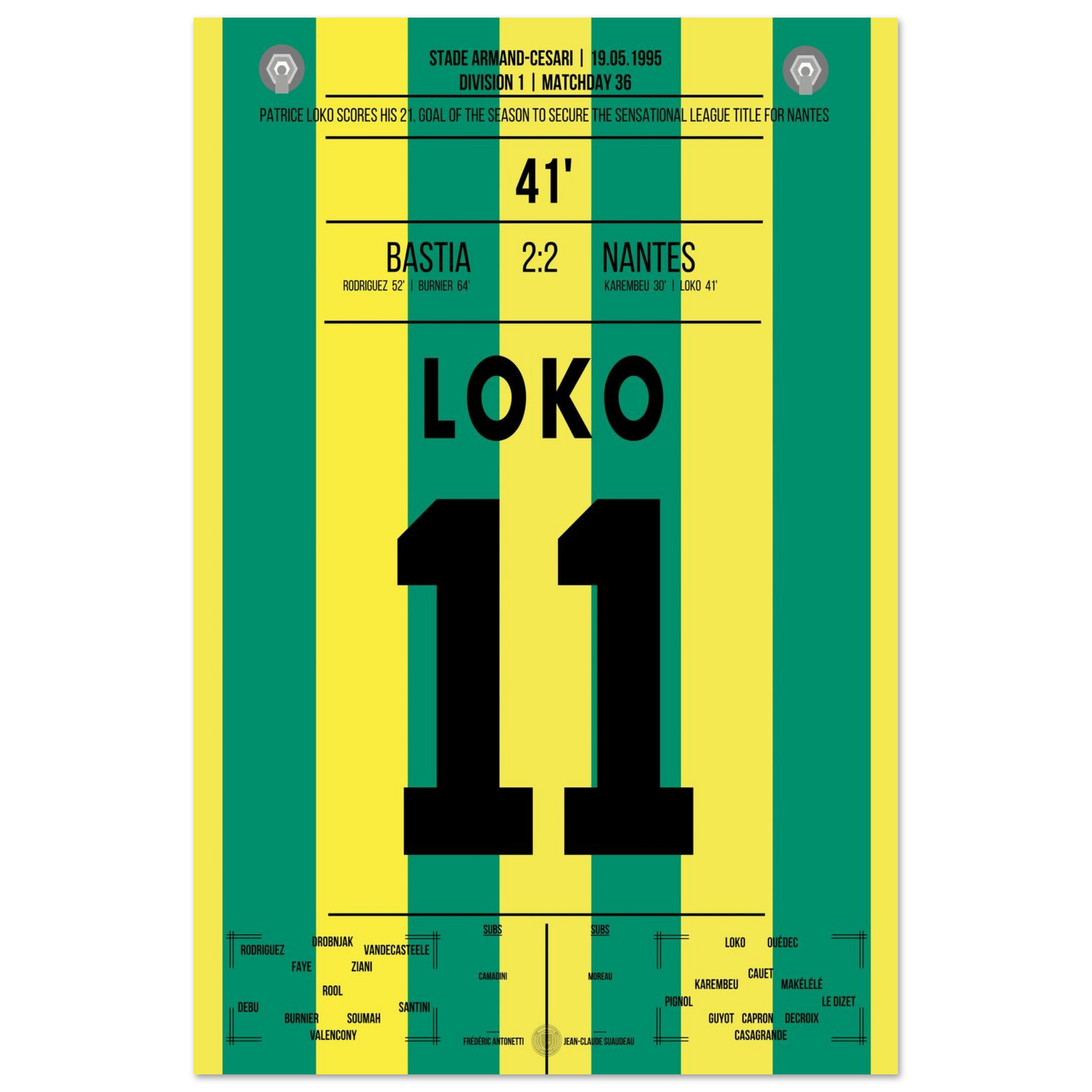 19. Mai 1995 – Bastia vs. Nantes 2:2 – Loko trifft, Nantes krönt die perfekte Saison! 🟡🟢