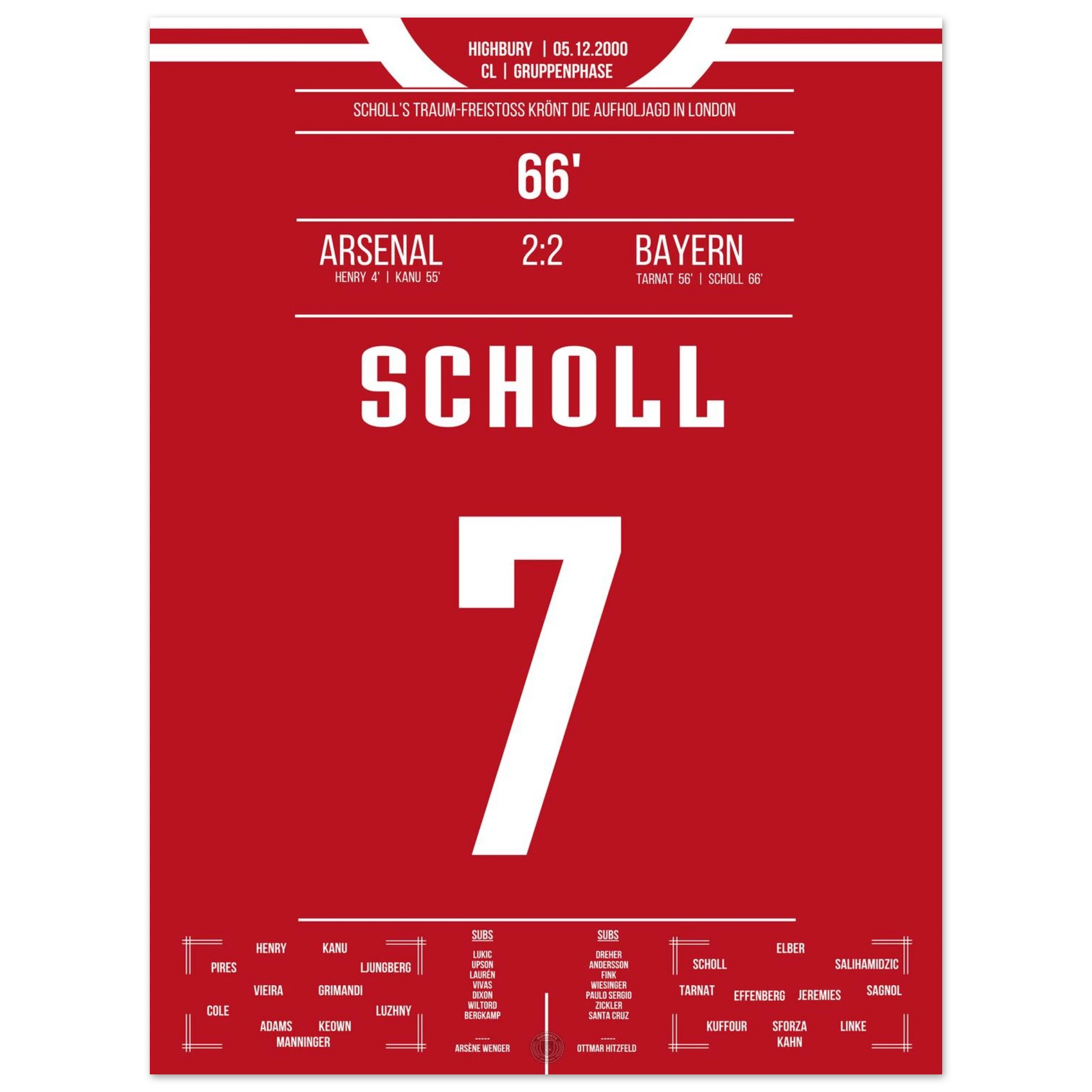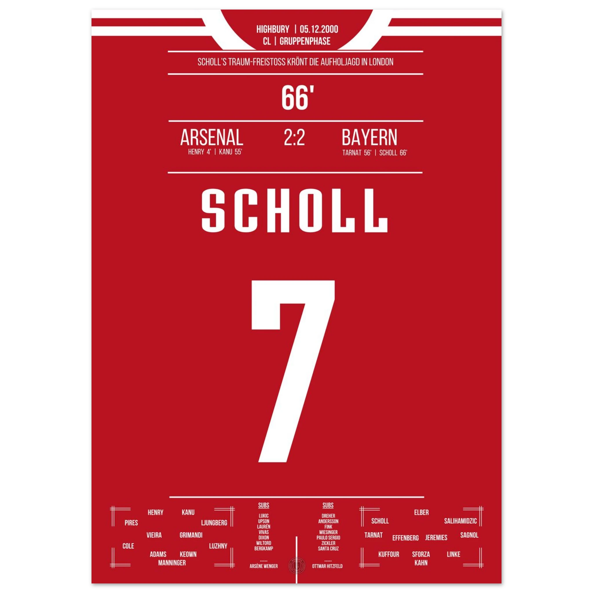 5. Dezember 2000 – Arsenal vs. Bayern 2:2 – Scholls Kunstwerk im Highbury: