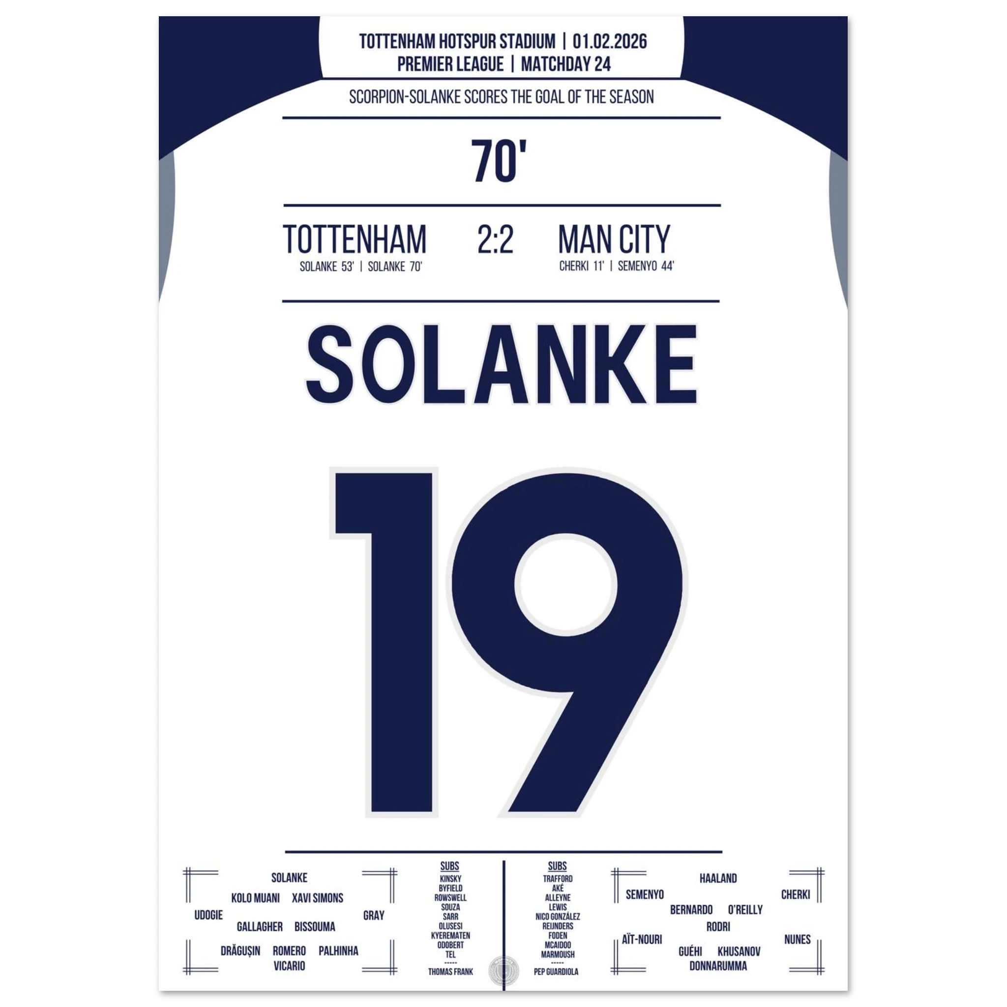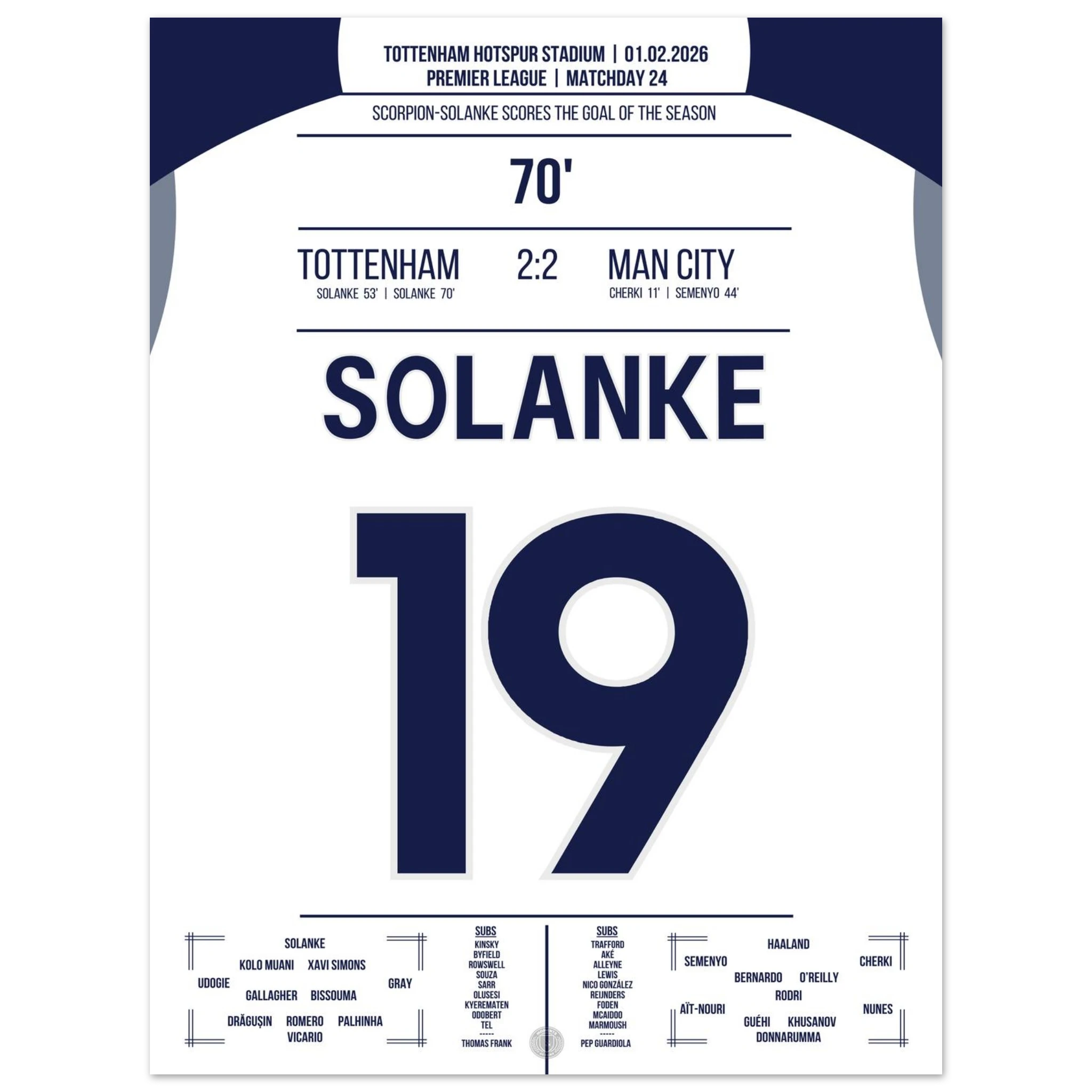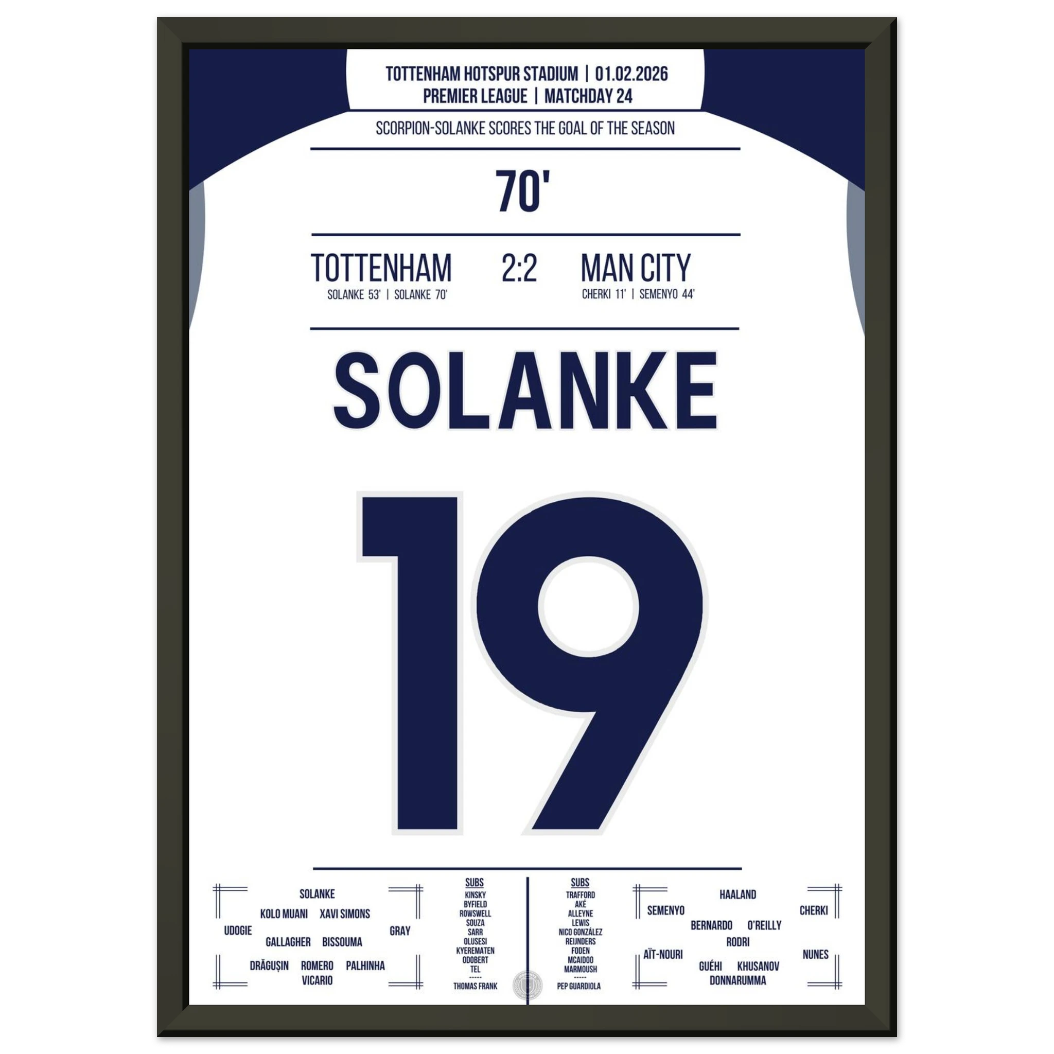 Ein Spiel voller Tempo und Klasse, doch in der 70. Minute passiert das Unglaubliche: Dominic Solanke trifft mit einem spektakulären Skorpion-Kick zum 2:2 und bringt das Stadion zum Explodieren. Ein Tor, das in die Geschichtsbücher eingeht.