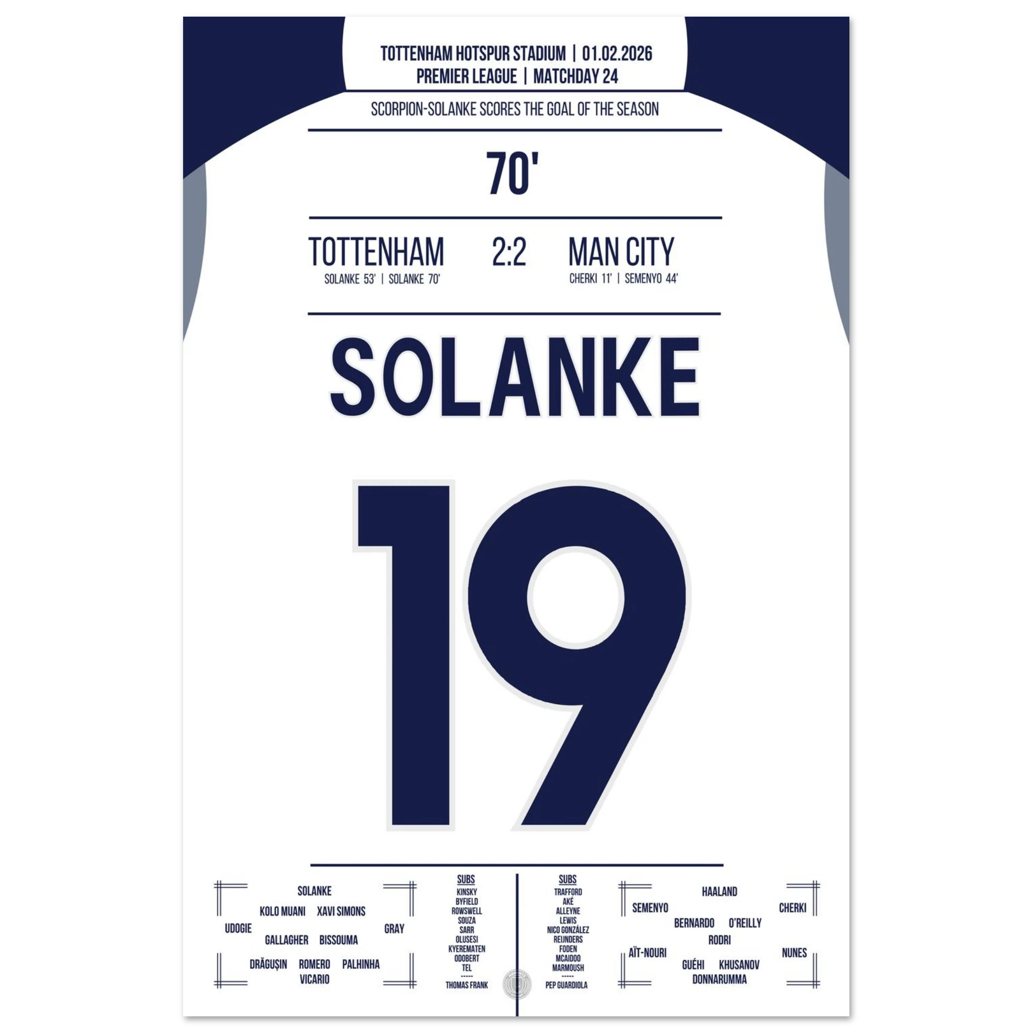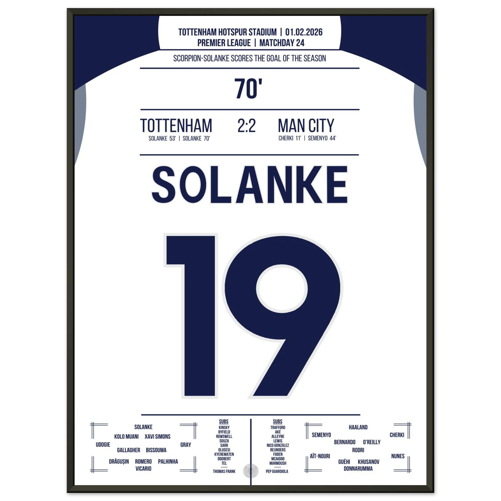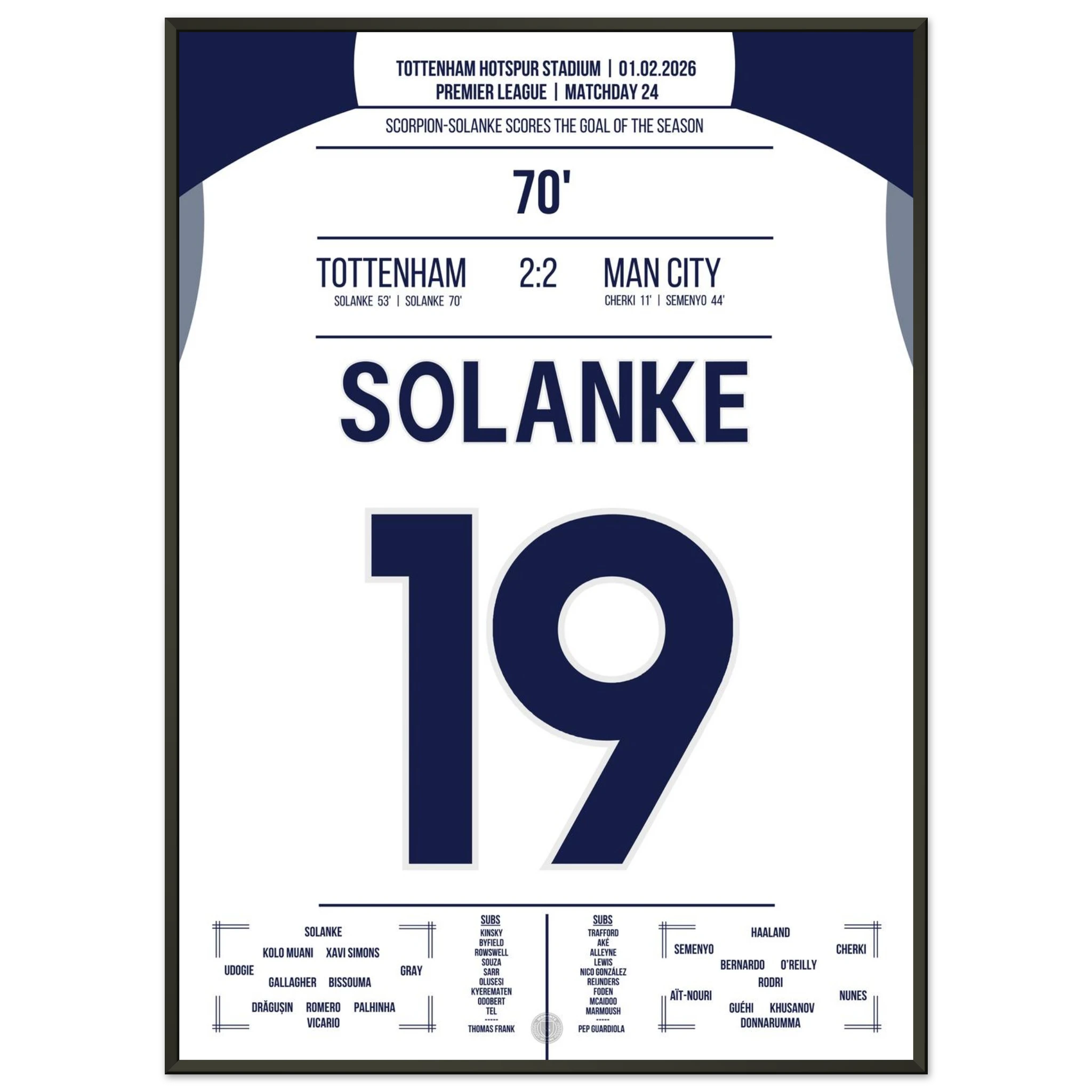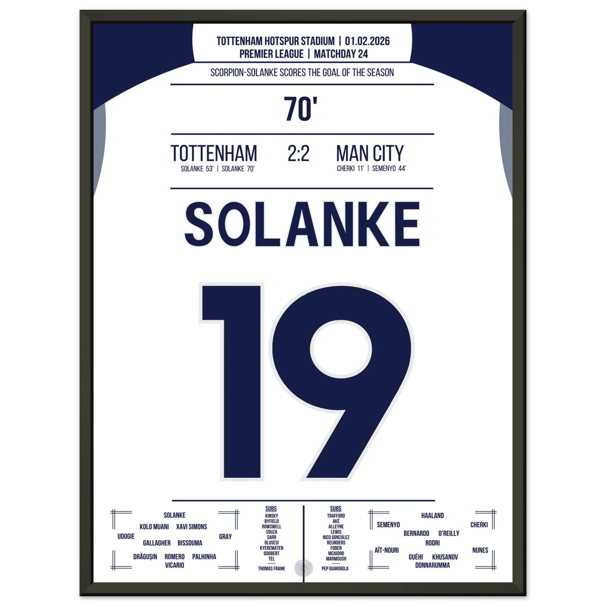 Ein Spiel voller Tempo und Klasse, doch in der 70. Minute passiert das Unglaubliche: Dominic Solanke trifft mit einem spektakulären Skorpion-Kick zum 2:2 und bringt das Stadion zum Explodieren. Ein Tor, das in die Geschichtsbücher eingeht.