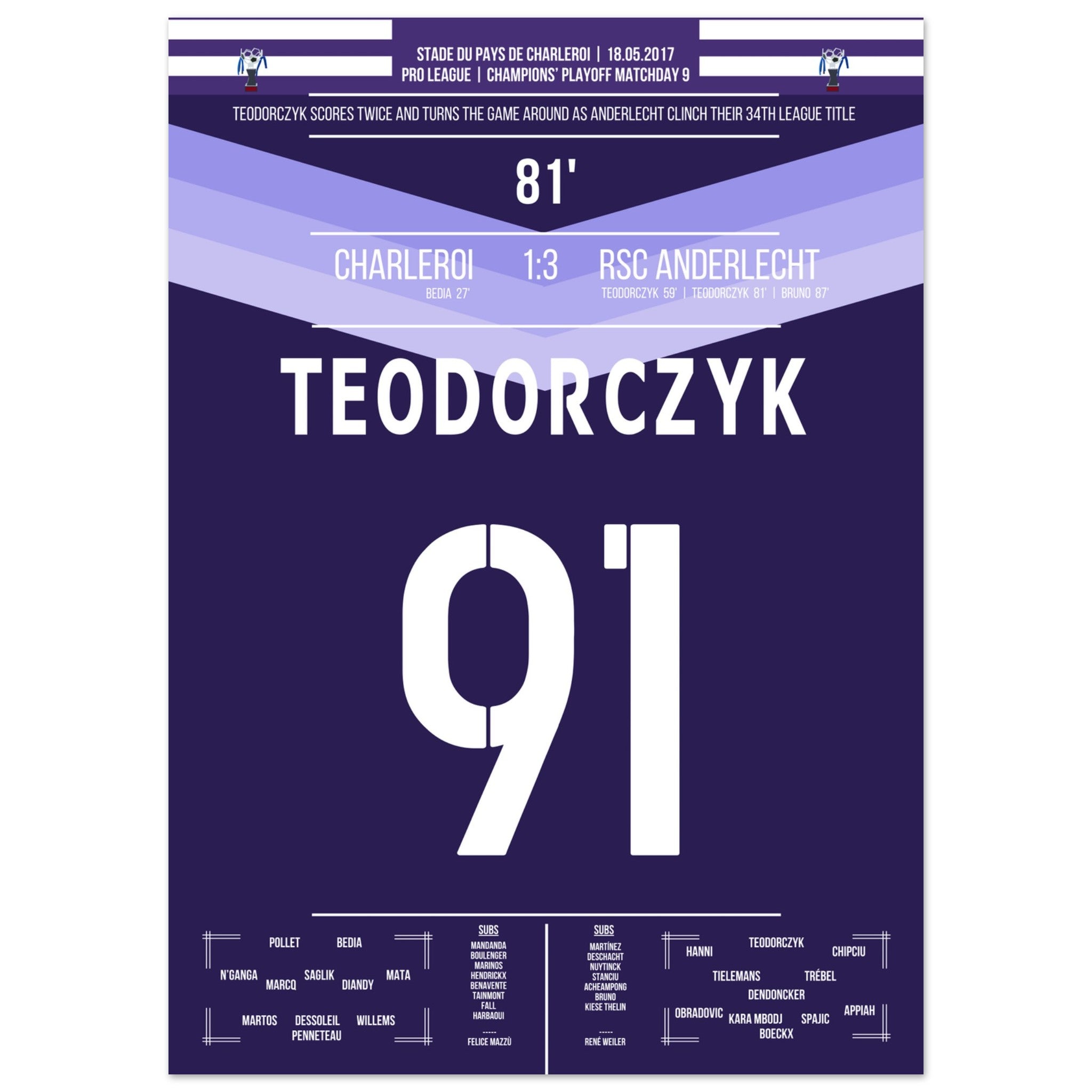 Teodorczyk shoots Anderlecht to the 34th championship.