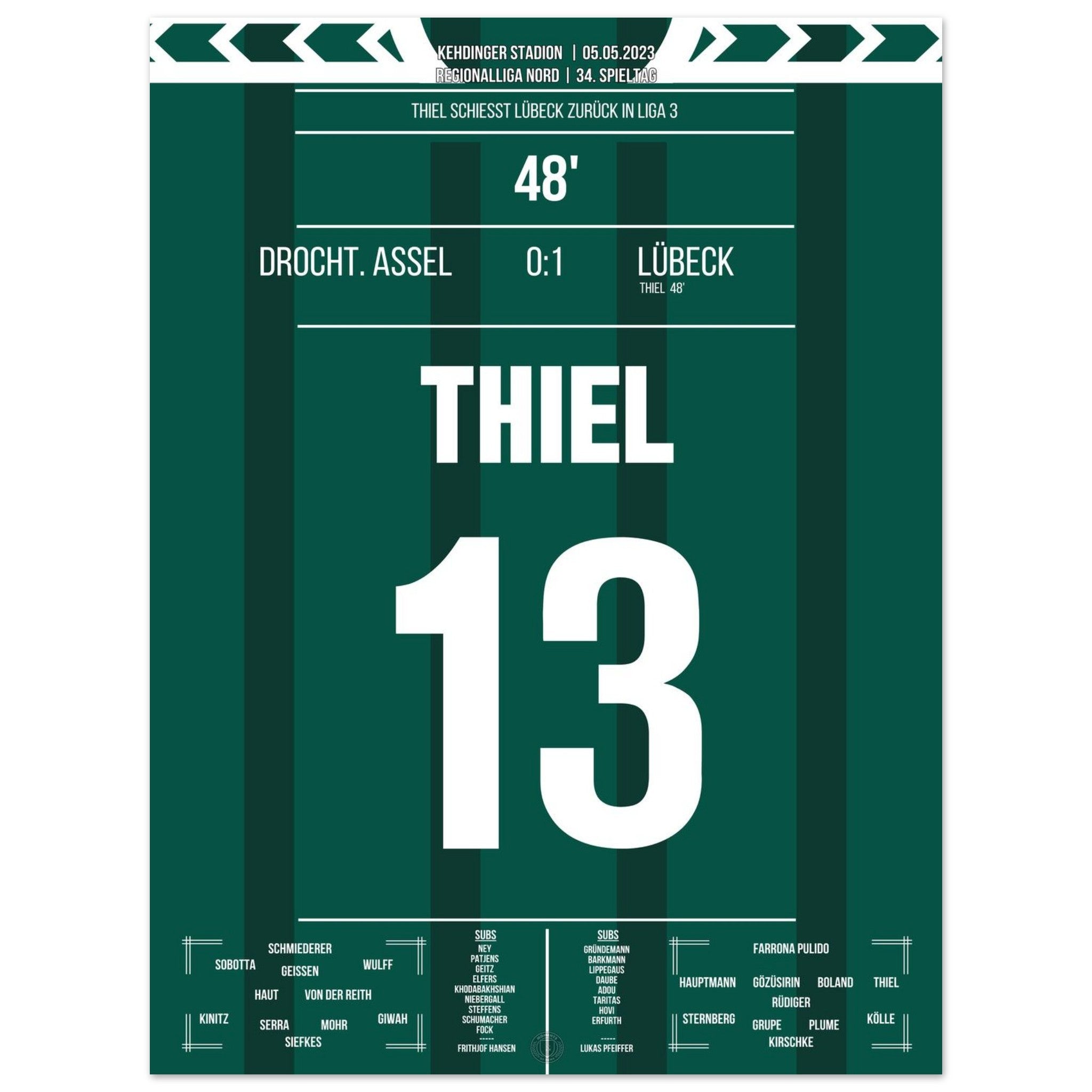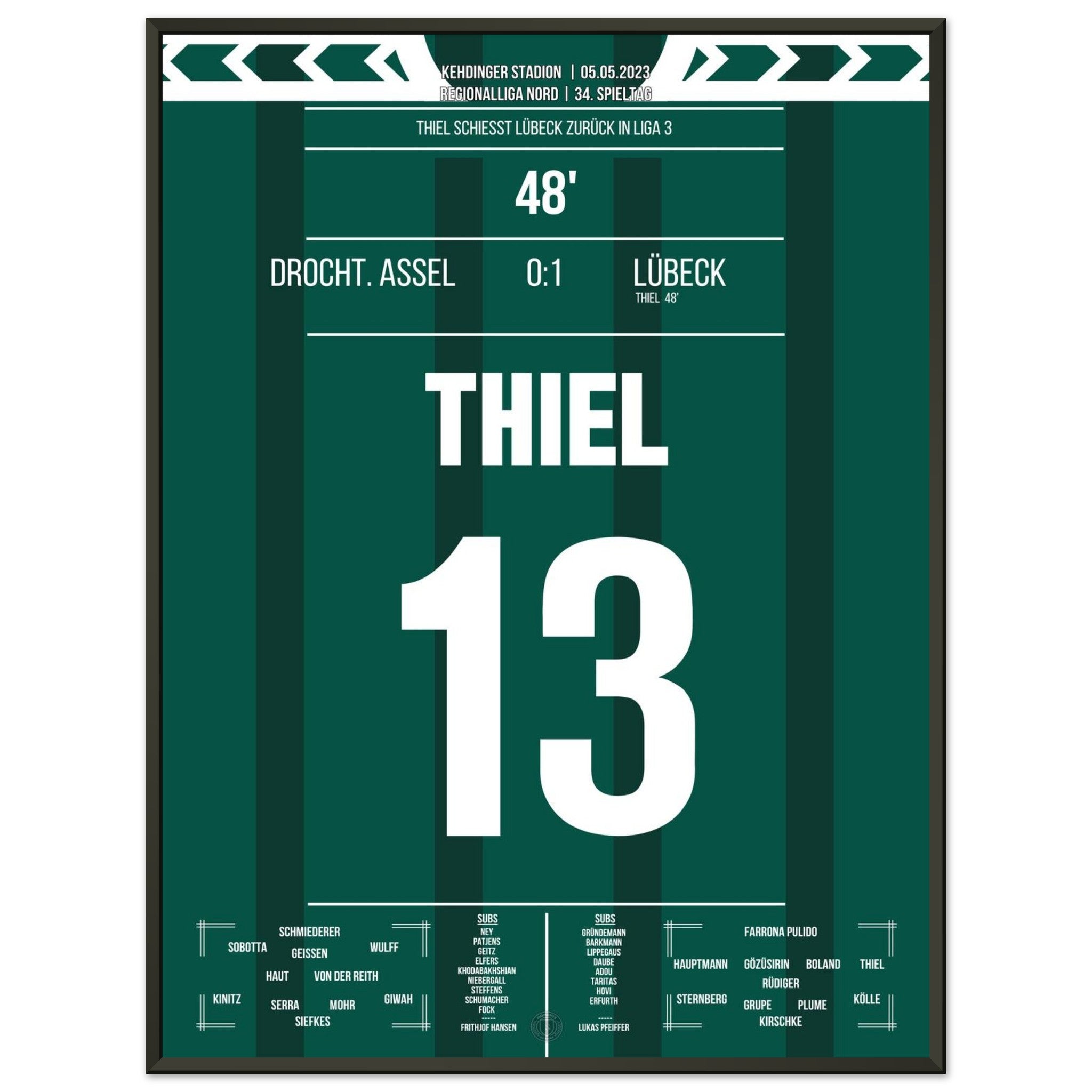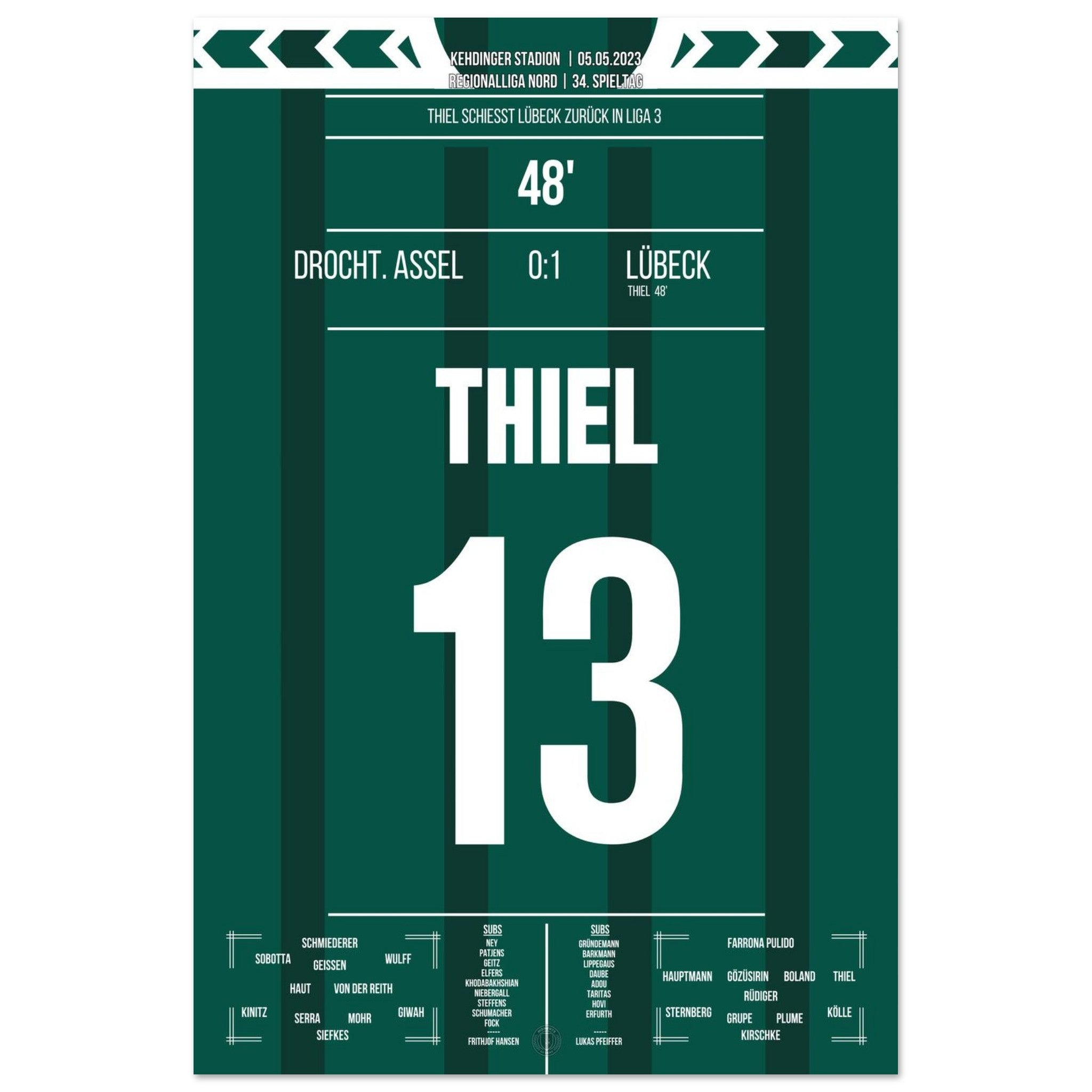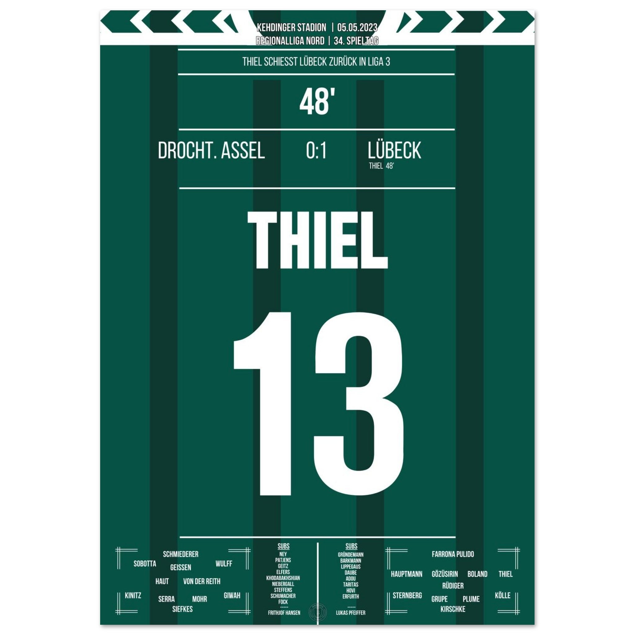 Thiel scores and Lübeck returns to League 3.