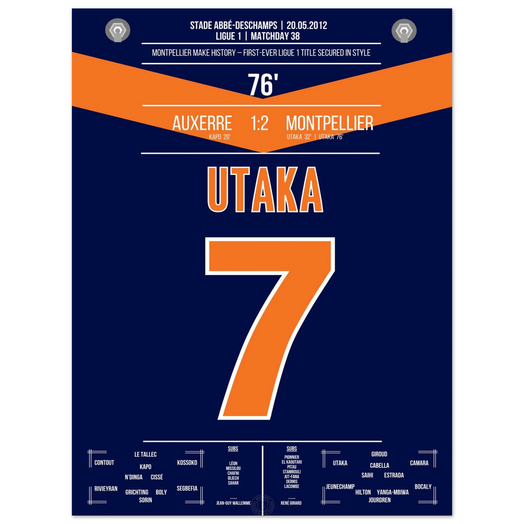 Unser Poster hält den Moment fest, in dem eine Stadt explodierte vor Glück – Utaka, der Held, der Montpellier unsterblich machte.